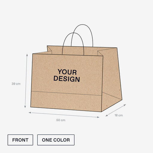 All-natural brown or white printed paper bags with handles. Reusable and fully recyclable.