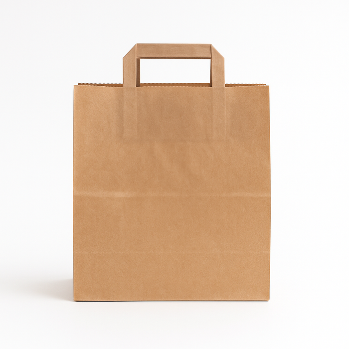 Paper bags are 100% natural and biodegradable. Takeaway paper bags are already widely used in restaurants, shops and grocery stores. The bags have a universal kraft color. The bags are comfortable to use and durable, they have a flat handle. The paper they are made of is not coated.
